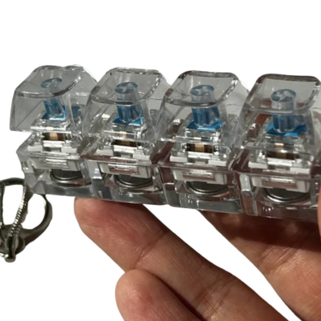 Po prostu... naciśnij! Mechaniczne klawisze z efektem LED dają satysfakcjonujący klik i wizualny błysk. To gadżet, który łączy relaks, dźwięk, światło i ruch – w wersji kieszonkowej.